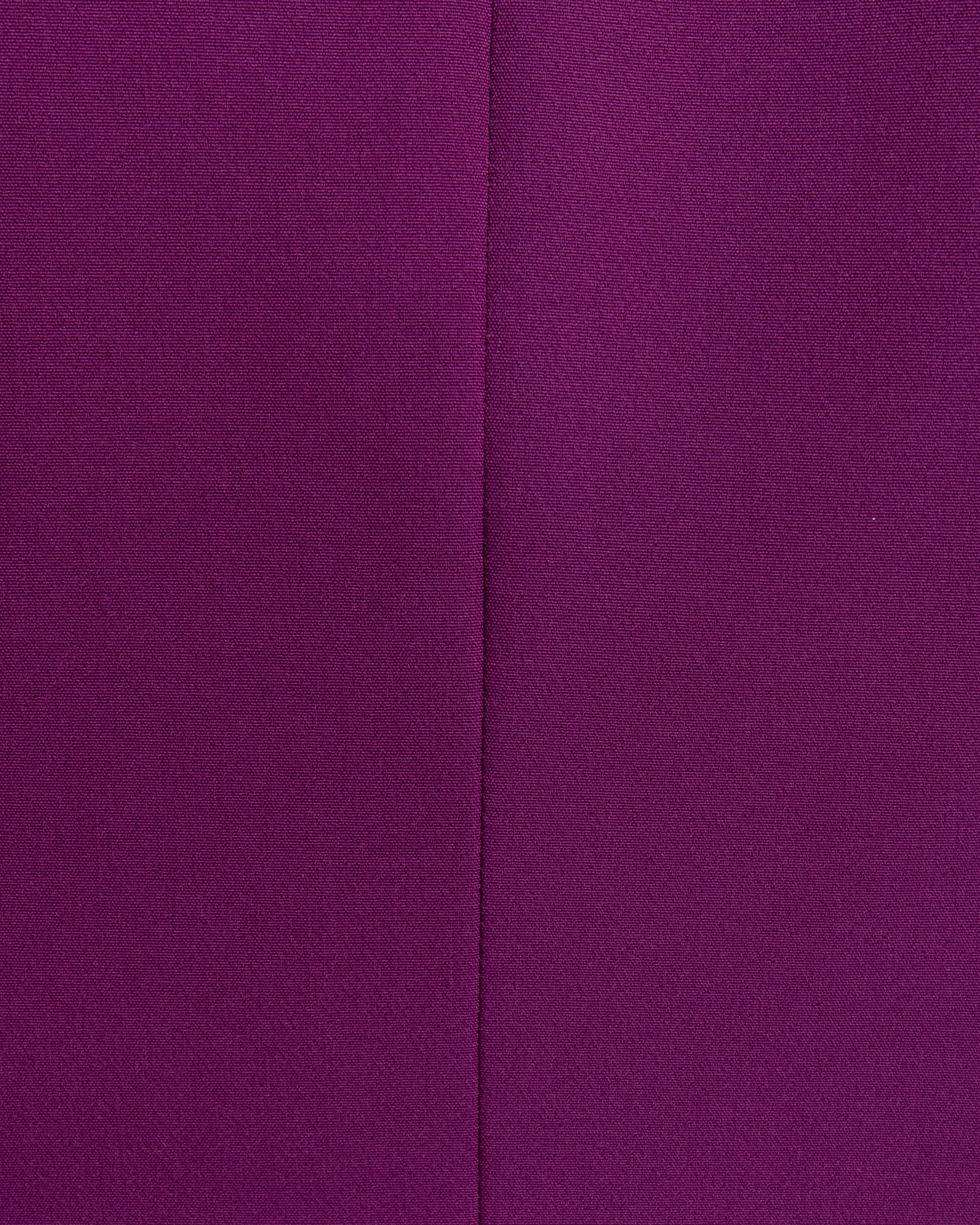 Designed with a dramatic cape at the back, the designers intended for there to be a straight-cut curve around the waist to achieve a tailor-like fit. Made for women who command attention, this piece both exudes dramatic flair AND authority in every movement.