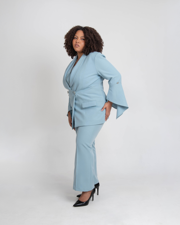 “I must say, I love the empowering packaging. The fit of the suit and pants were perfect! I feel bad for only ordering one. Thank you so much! Worth the wait.”