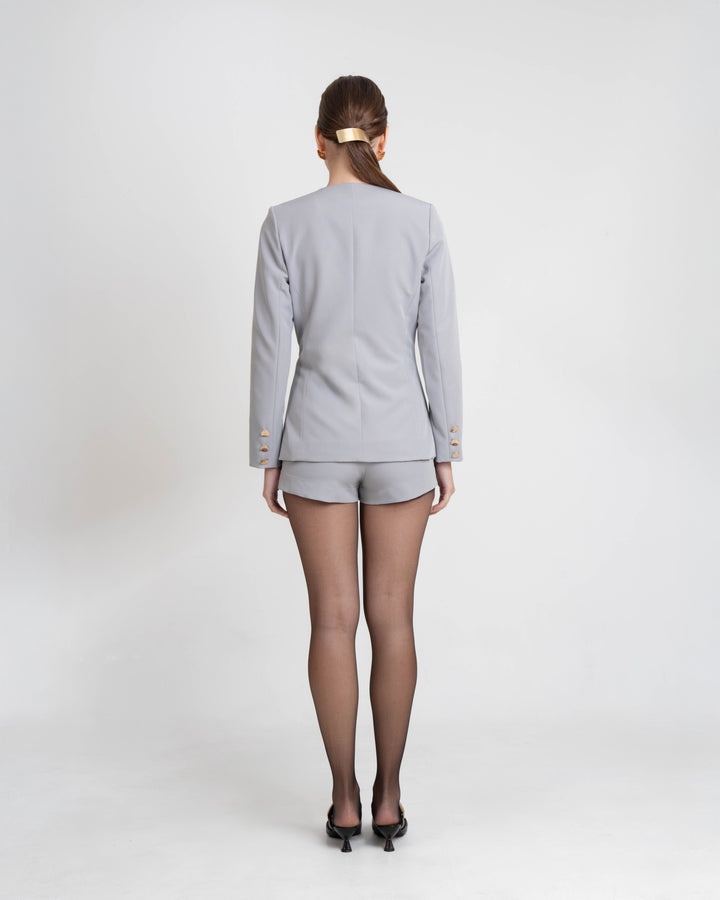 Clean, collarless, and crisp—this suit is a study in lightness. Designed as our first minimalist piece, it reflects the belief that to move forward toward our ambitions, we must first let go of what weighs us down.